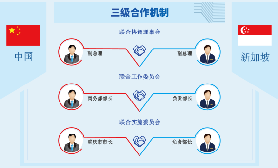 由重庆市人民政府和新方贸工部共同牵头,重庆市人民政府市长和新加坡指定部长担任联合主席,负责具体推进政策创新和项目落地。