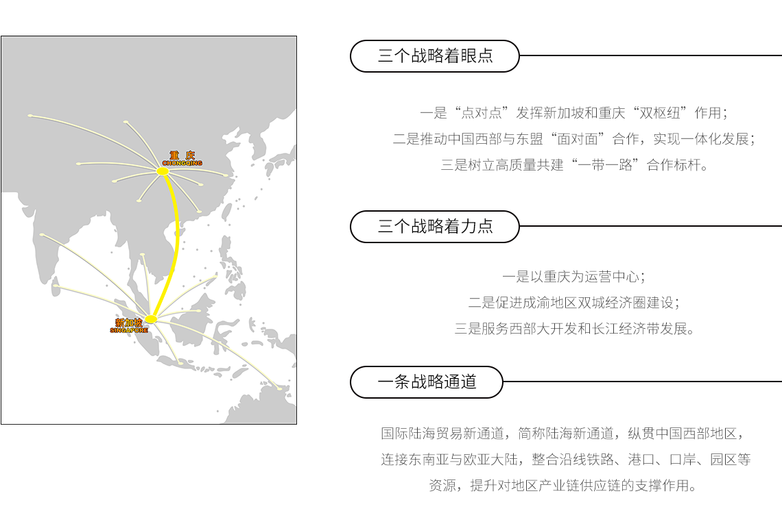 一是“点对点”发挥新加坡和重庆“双枢纽”作用;