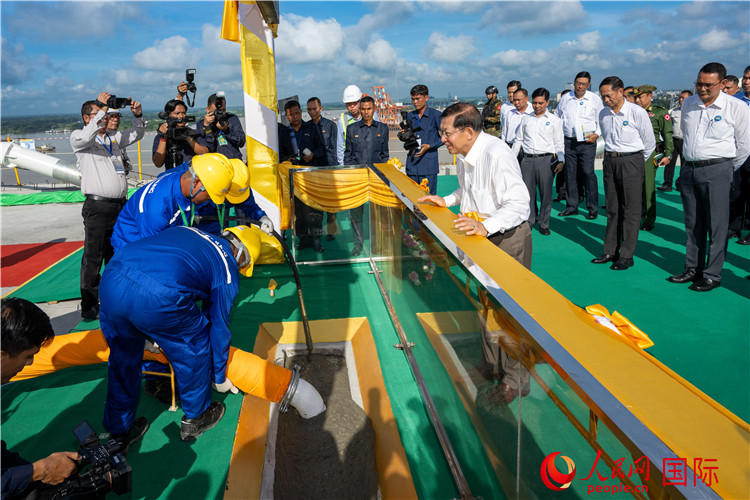 缅甸代总统敏昂莱亲自启动合龙浇筑。人民网记者 谢佳君摄