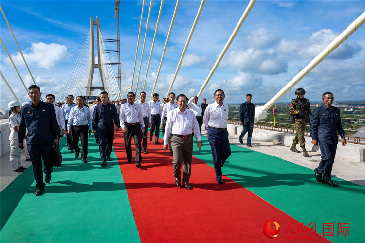 敏昂莱听取了大桥施工进度汇报,实地参观施工现场,并亲自启动合龙浇筑。随着最后一方混凝土精准入模,达拉大桥主桥顺利合龙,主体结构实现贯通。项目建设由此转入附属结构施工和收尾阶段,预计将于今年底完工交付。