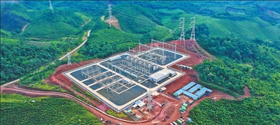 老挝孟松600兆瓦风电项目500千伏升压站航拍。