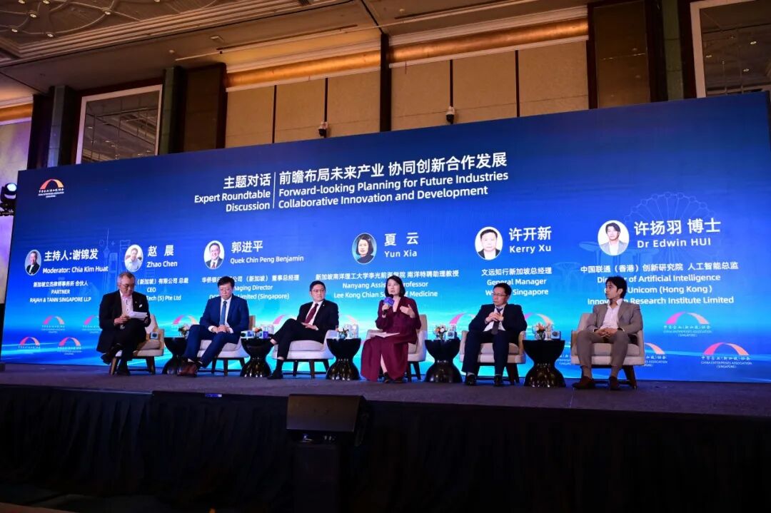 论坛期间还举行了“前瞻布局未来产业,协同创新合作发展”圆桌对话会。圆桌对话主持人由新加坡立杰律师事务所合伙人谢锦发律师担任。南洋理工大学李光前医学院南洋特聘助理教授夏云、文远知行新加坡总经理许开新、中国联通(香港)创新研究院人工智能总监许扬羽、新松科技(新加坡)CEO赵晨、华侨银行大中华事业部资深董事总经理郭进平等5位嘉宾围绕前瞻布局未来产业、协同创新合作发展展开讨论,引发现场观众共鸣和思考,气氛热烈。