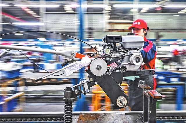 (位于重庆高新区的一家农机公司,工人正在忙碌。首席记者 龙帆 摄/视觉重庆)