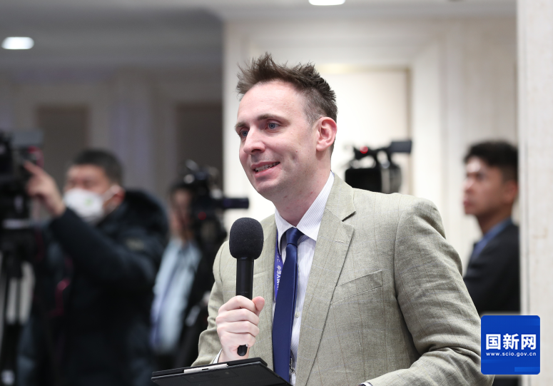 中央广播电视总台央视记者提问(刘健 摄)