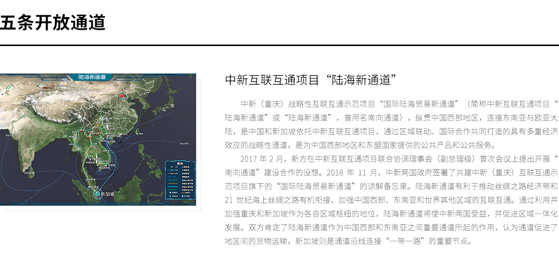在国家工信部及重庆市委、市政府和新加坡贸易及工业部、新加坡通讯及新闻部推动下,通过中新双方相关部门与中国电信、中国移动、中国联通、新加坡电信、新加坡星和电信的通力合作,中新(重庆)国际互联网数据专用通道于2019年9月11日在新加坡正式开通。该通道是中国首条针对单一国家的“点对点”国际数据专用通道……