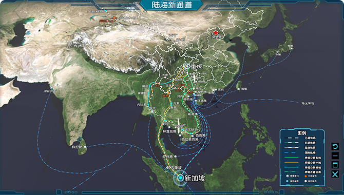 中新(重庆)战略性互联互通示范项目“国际陆海贸易新通道”(简称中新互联互通项目“陆海新通道”或“陆海新通道”,曾用名南向通道),纵贯中国西部地区,连接东南亚与欧亚大陆,是中国和新加坡依托中新互联互通项目,通过区域联动、国际合作共同打造的具有多重经济效应的战略性通道,是为中国西部地区和东盟国家提供的公共产品和公共服务。